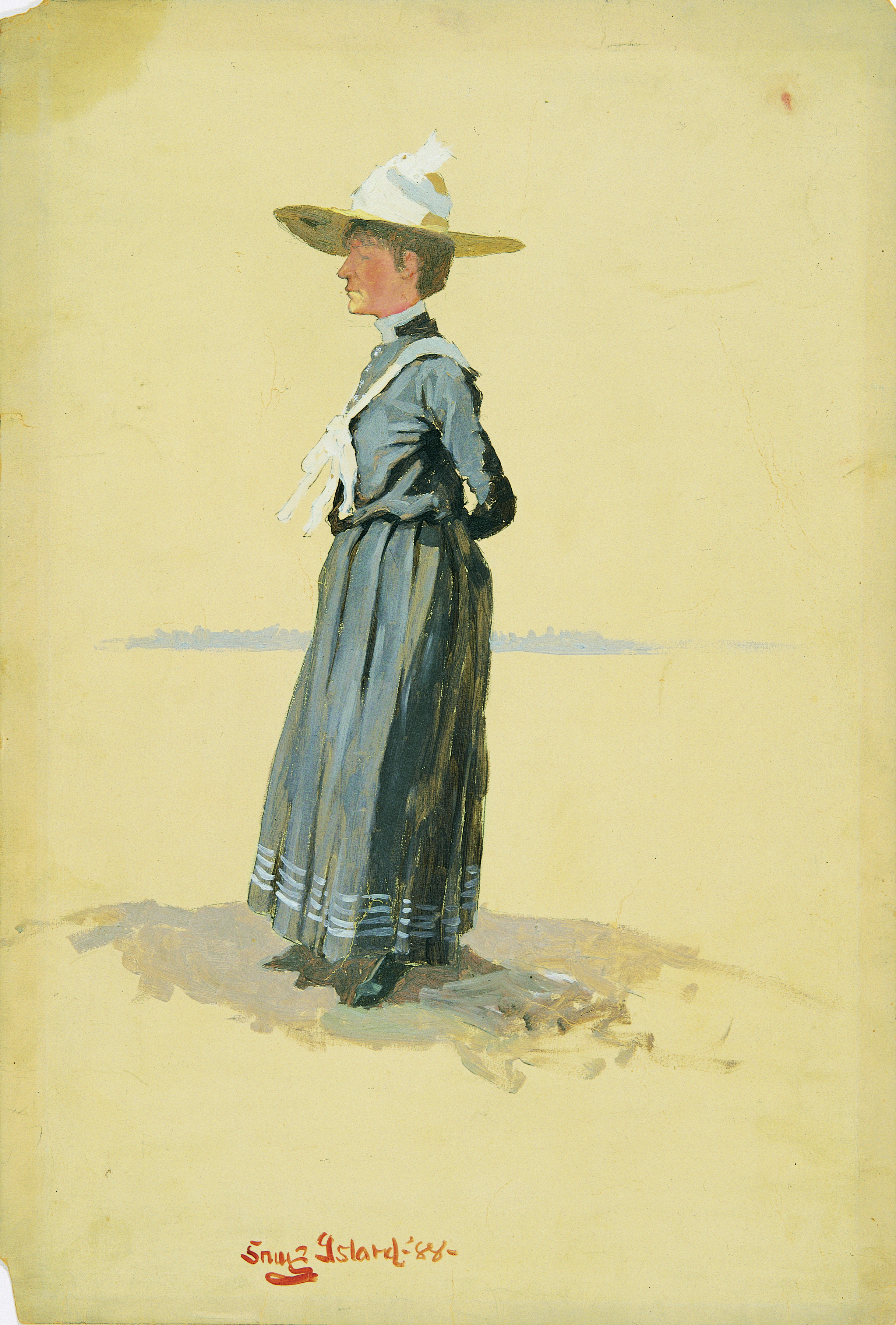 Pictured: Snug Island (Portrait of Eva Remington), 1888, gouache on paper, 17 3/8 x 11 5/8", Museum purchase, 1959, Frederic Remington Art Museum 1966.090. Participants in the Remington Museum’s “Consider This” program will spend a half hour in small group conversation about this painting.